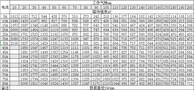 磁感應(yīng)強(qiáng)度:11000 Oe(氣隙100mm時(shí))